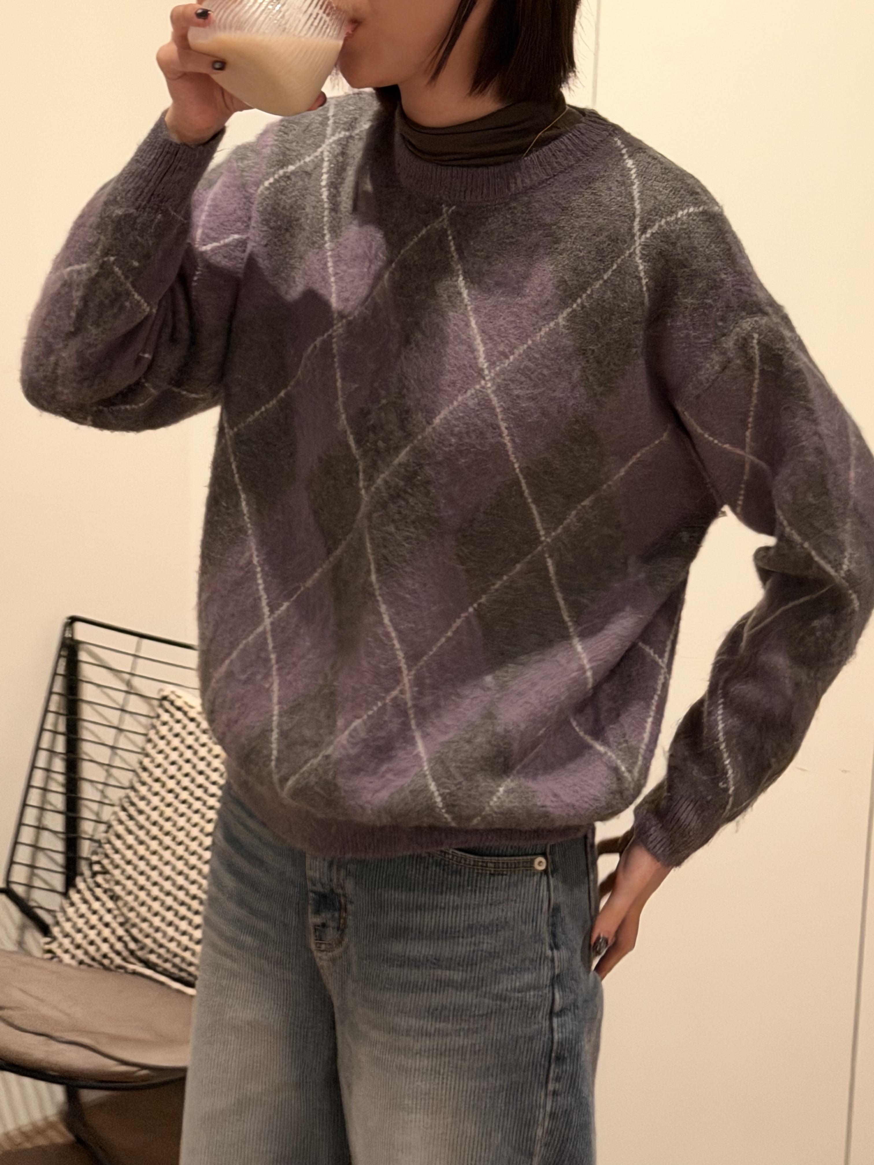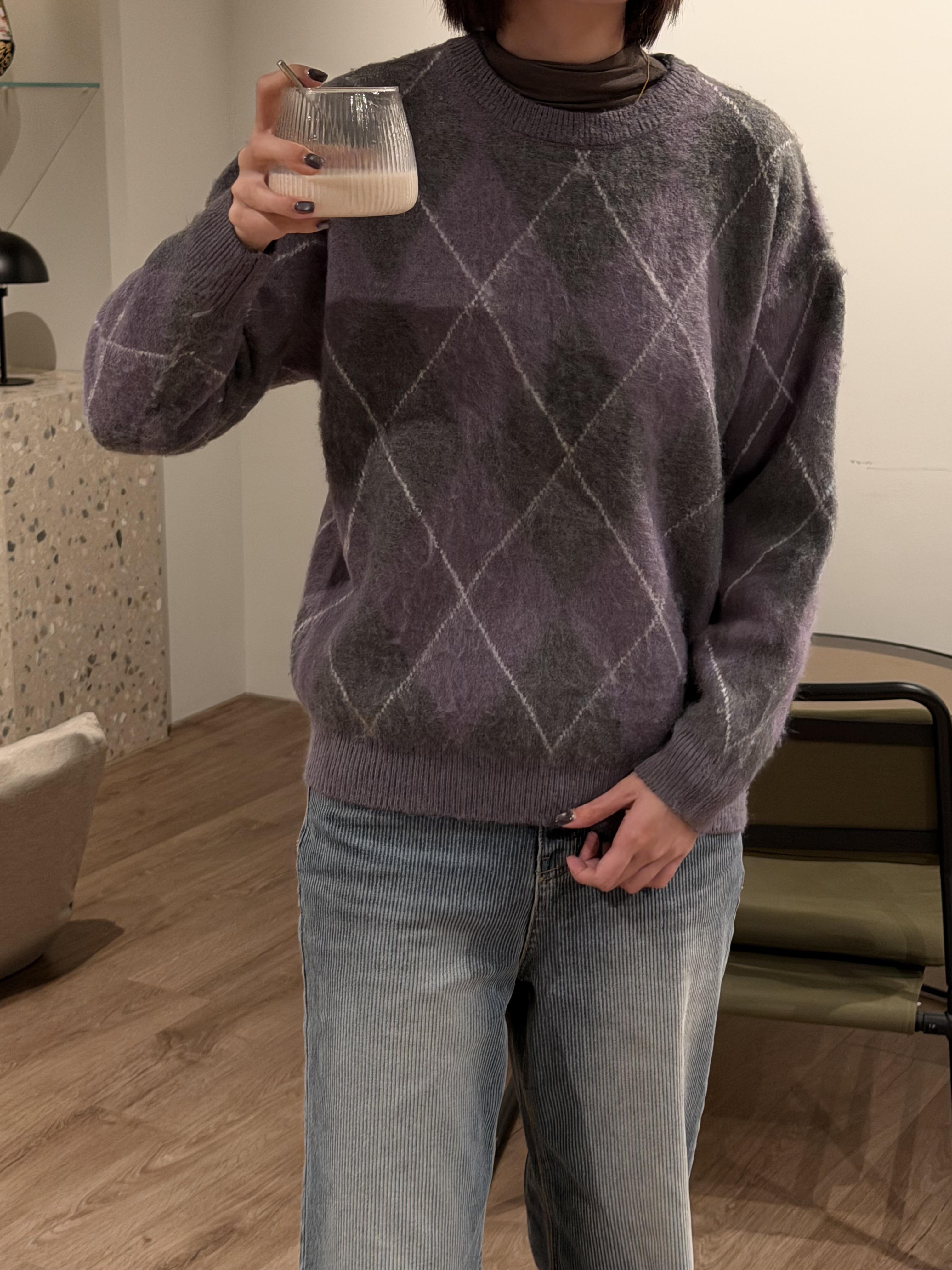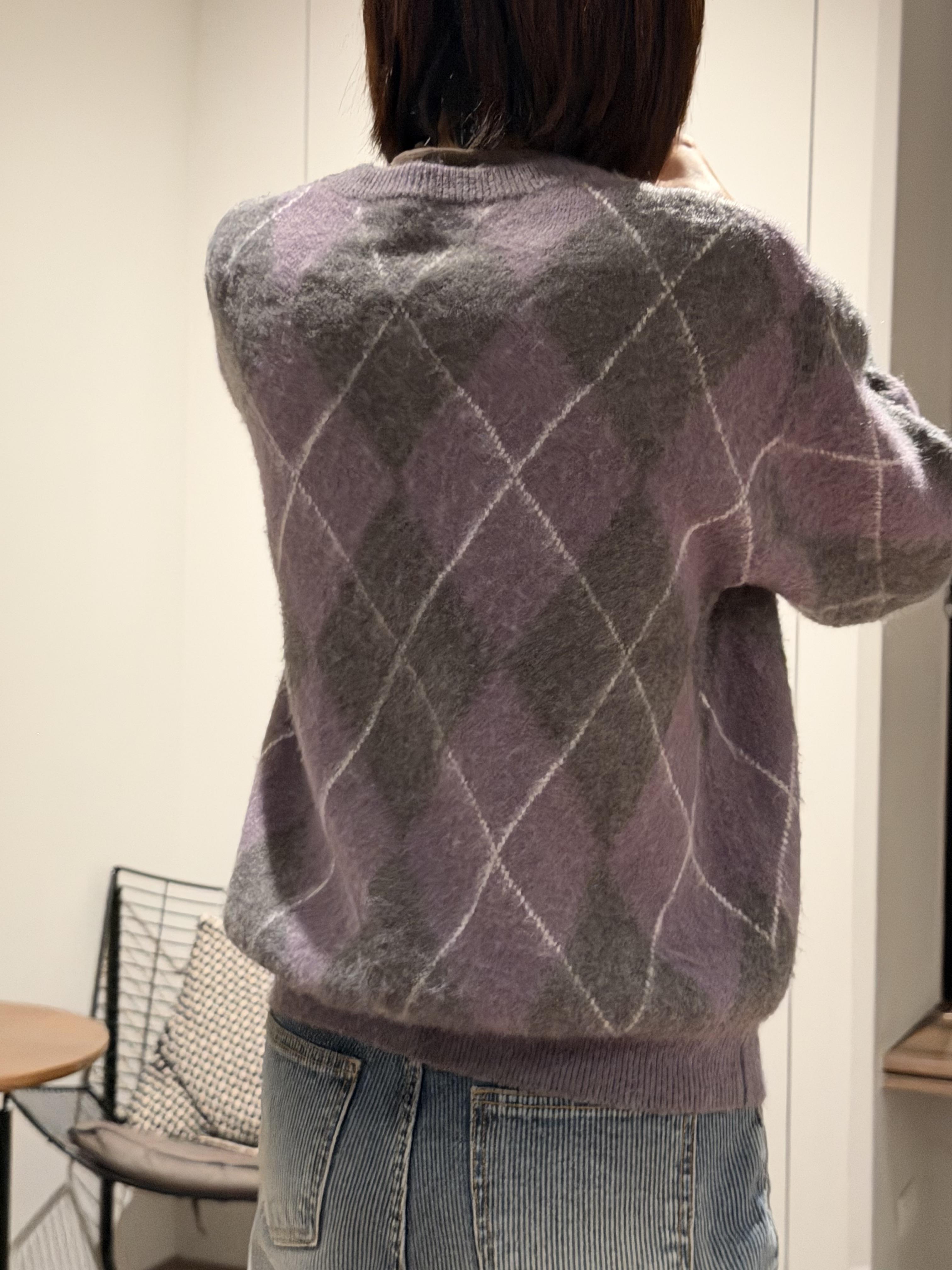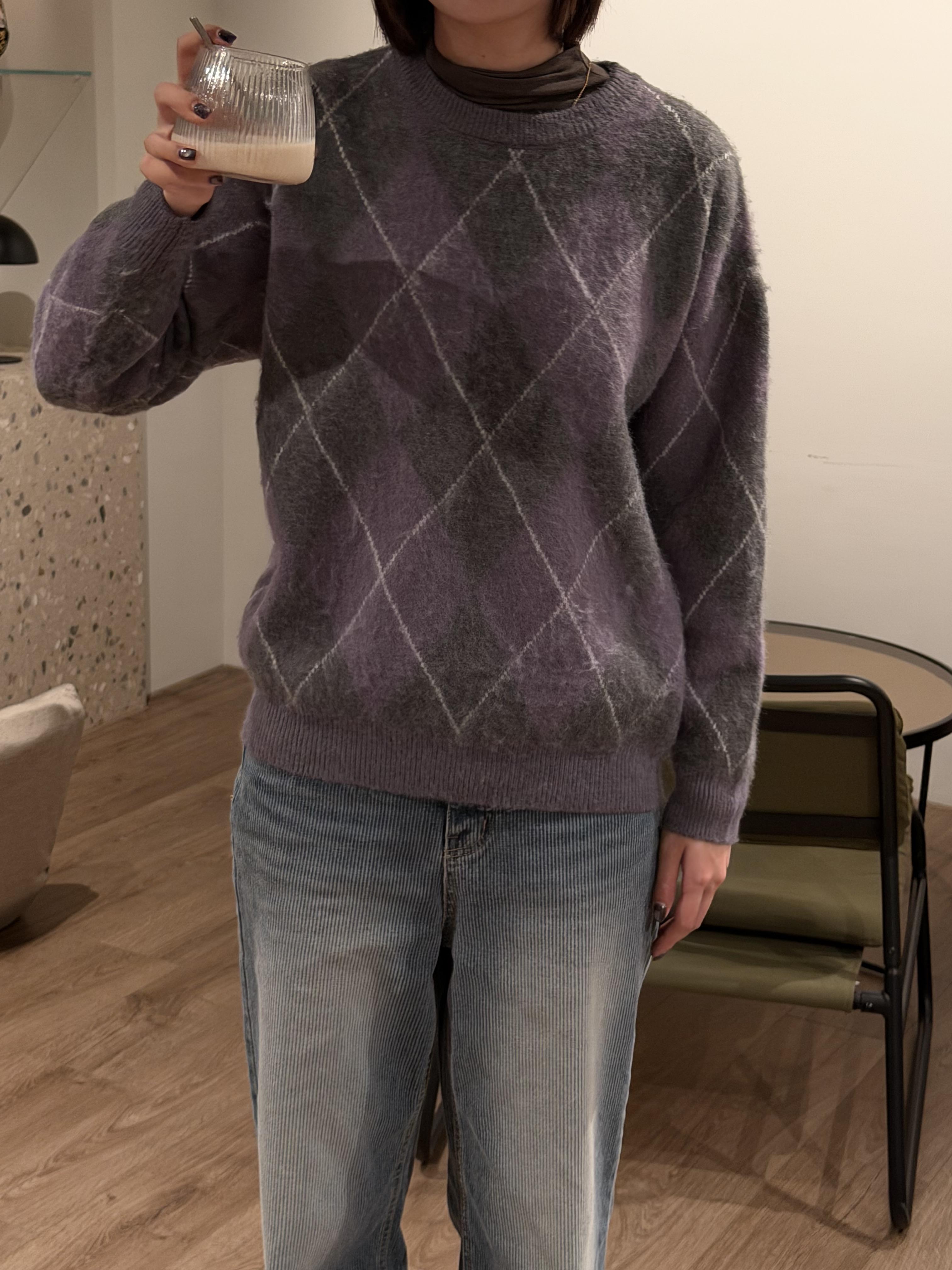 Gz32 紫灰菱格紋毛衣