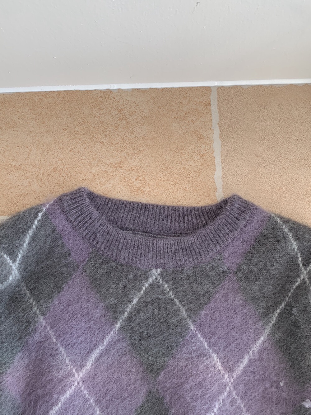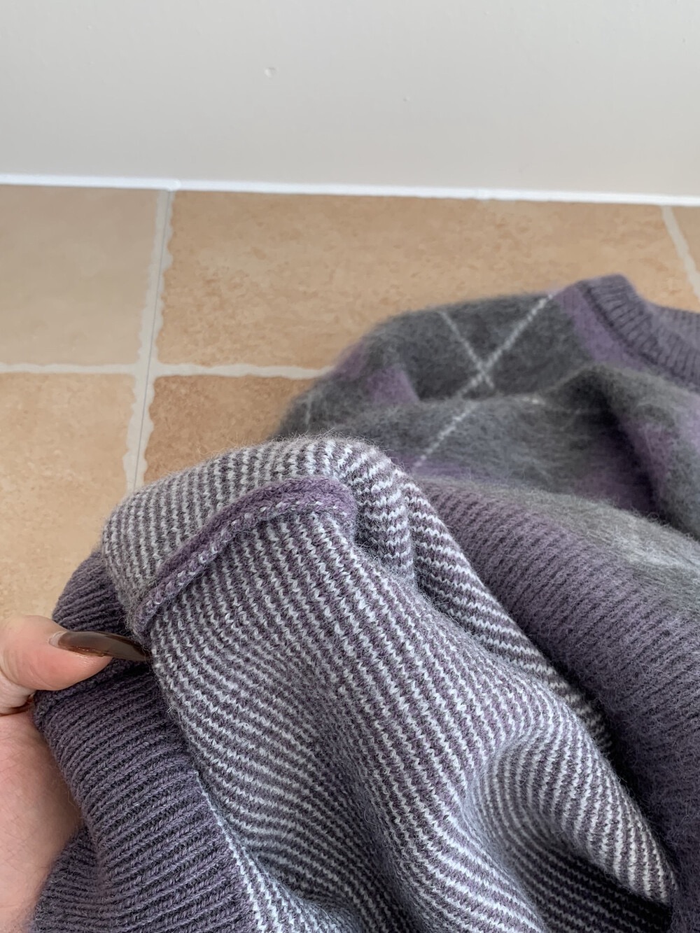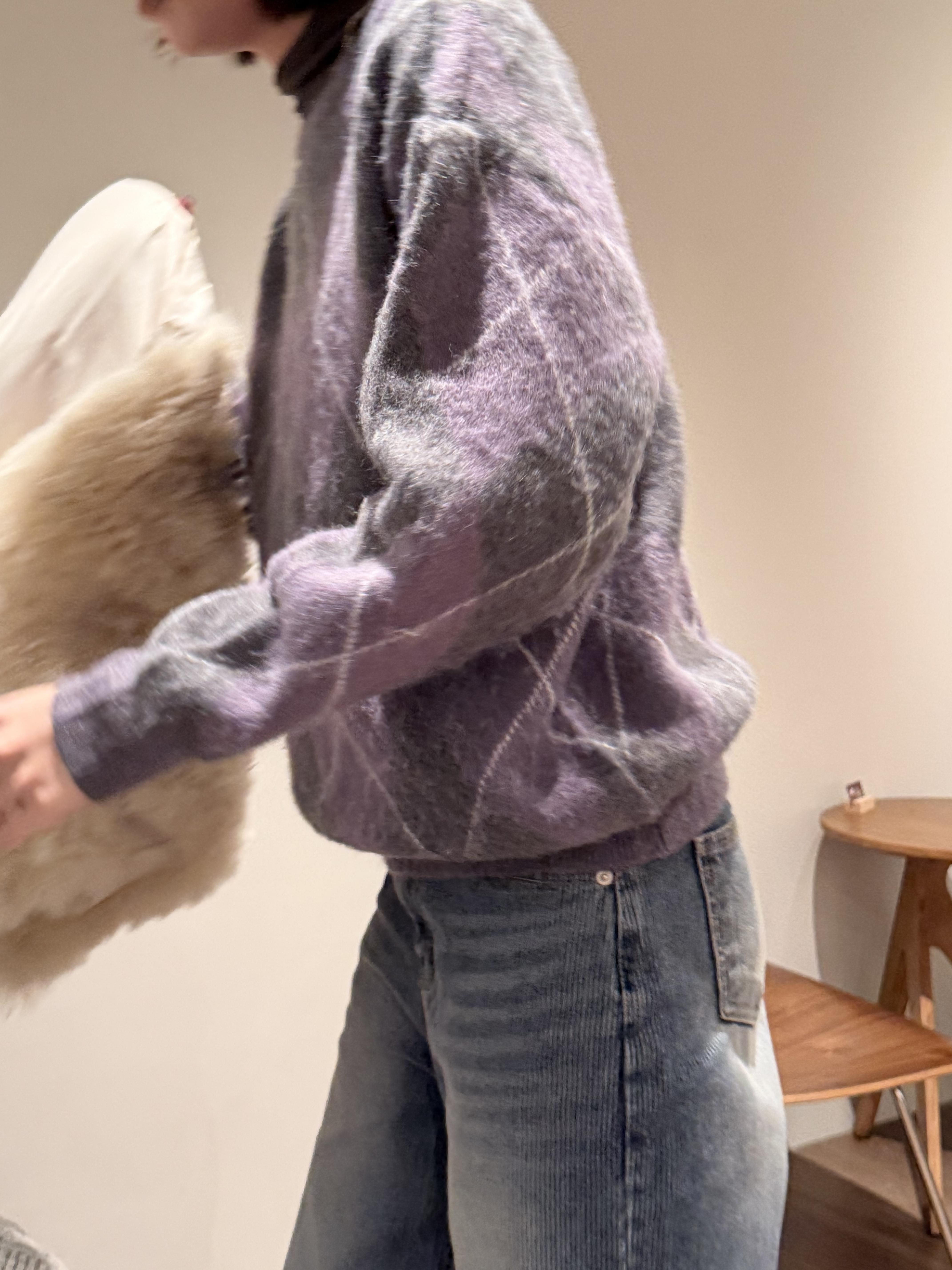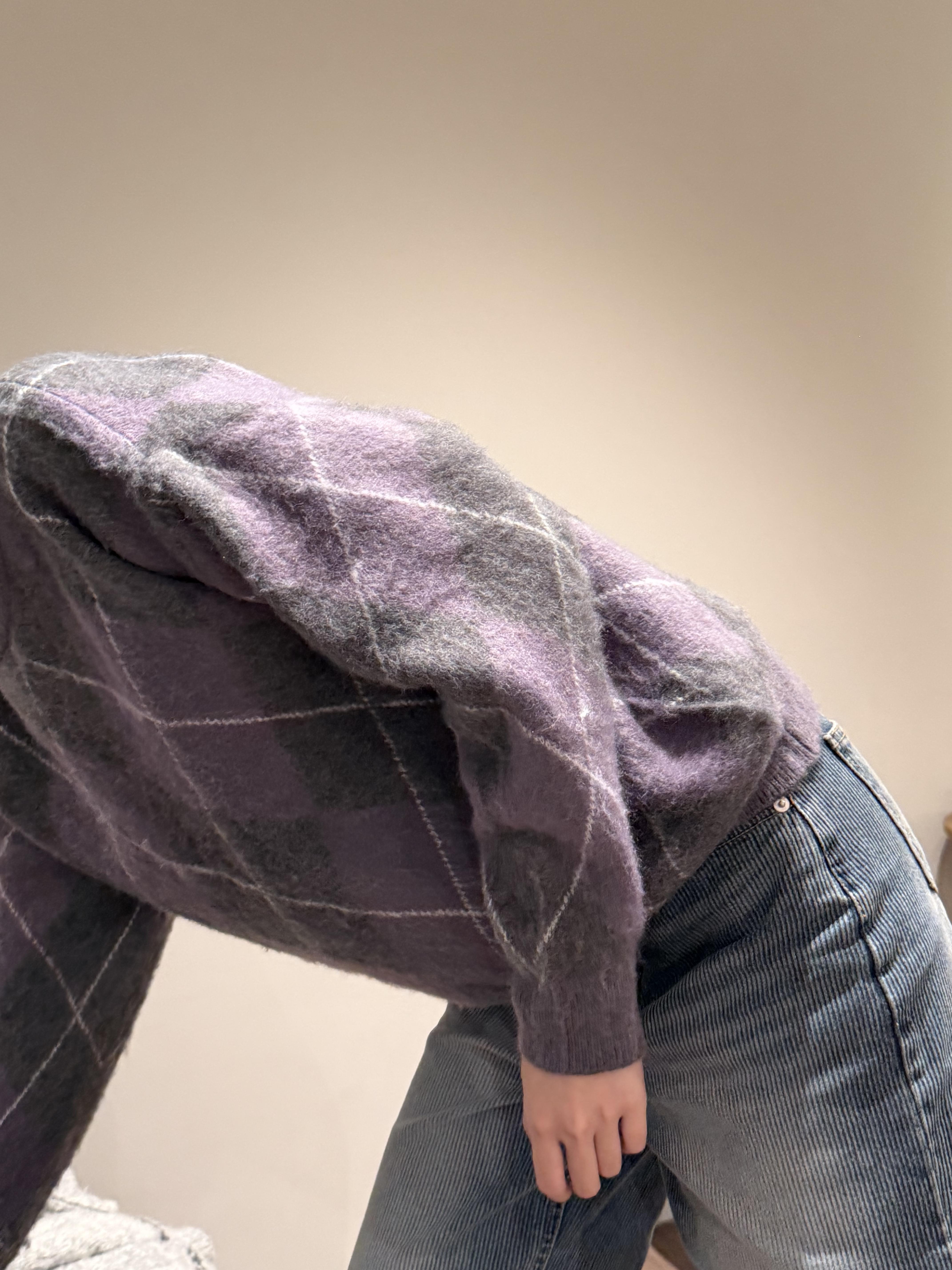 Gz32 紫灰菱格紋毛衣
